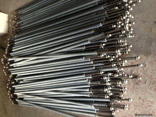 翅片加热管是在普通的光管(普通型电加热元件)表面缠绕金属散热片,它与光管相比,具有以下几个优点: